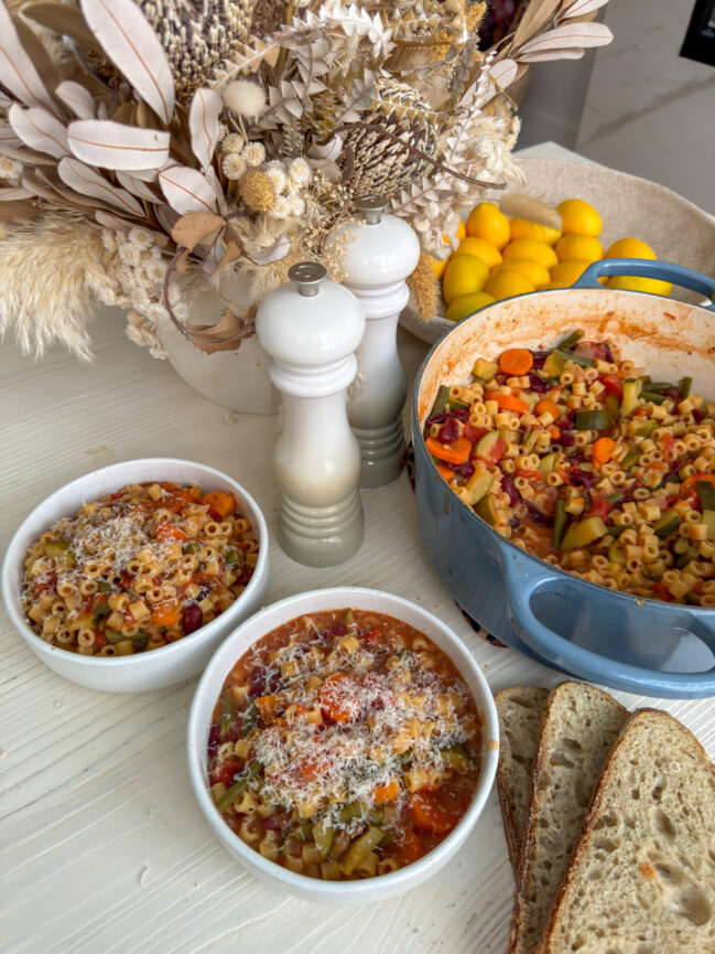 RECIPES Recipes are often inspired by the things we love most โ flavors, memories, or even the way a space feels. This warm and cozy Minestrone Soup is inspired by my favorite Jo Malone diffuser (not sponsored, just genuinely obsessed). Itโs comforting, familiar, and quietly nourishing. Loaded with veggies, tender pasta, hearty beans, and a savory