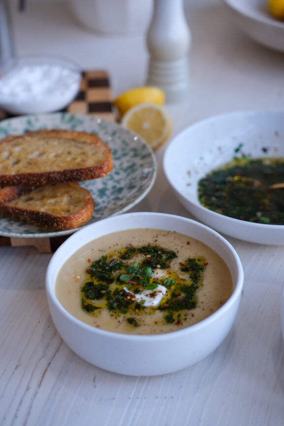 It’s creamy thanks to the mix of potatoes and white beans. The leeks add sweetness, the beans add body, and the chili oil brings contrast with fresh herbs and gentle heat. It’s comforting, but different enough to not feel like any old potato soup. Every spoonful is a burst of flavor. Plus, it’s simple to make, blends great, and tastes even better the next day.