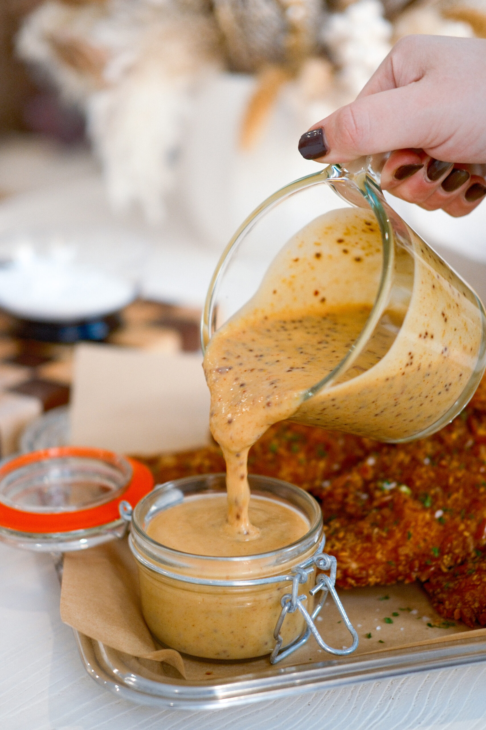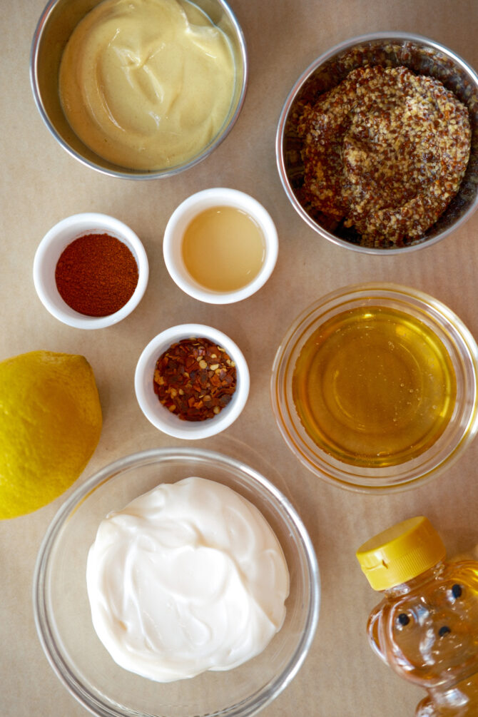 While the chicken bakes, whisk together all sauce ingredients in a bowl until smooth. Taste and adjust seasoning as needed.