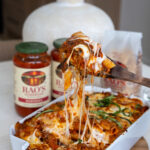 Return the strained pasta to the same pot over low heat. Add the jar of Rao’s marinara sauce and the reserved pasta water.